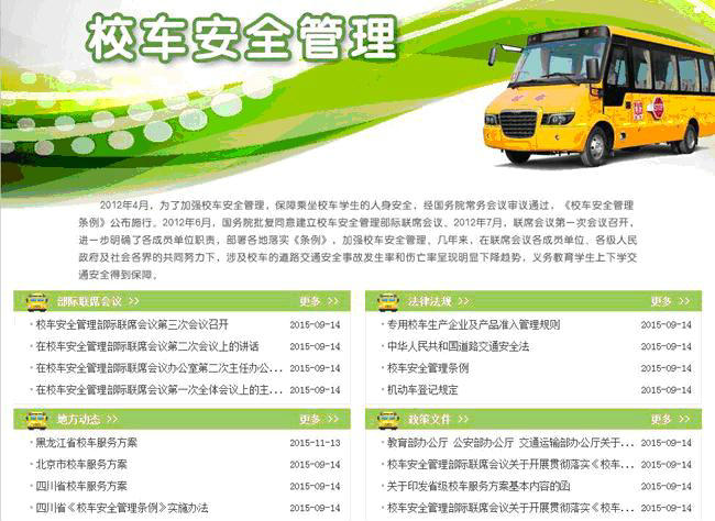 6.推动公共监管信息公开。及时公开2015年秋季开学工作暨“护校安园”行动落实情况,义务教育均衡发展、全国职业教育工作开展、农村义务教育学生营养改善计划等专项督导情况,发布督查通报,对查出的问题公开曝光。开设校车管理专题栏目,公开校车管理法律法规、政策文件、各地动态,并对校车事故处理及督导情况进行及时通报。开设“曝光台”栏目,发布各项事故调查信息,对南昌高考替考事件、高校领导干部违反八项规定、中学教师有偿补课处分、教育乱收费等情况进行通报。
