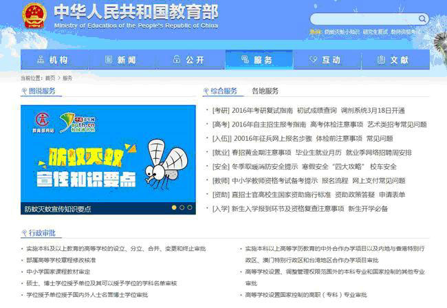 5.加强公共服务信息公开。深入推进落实《高校信息公开清单》,印发通知要求各高校对照检查各事项公开情况,确保全面、及时、准确地公开清单所列每项信息,为师生和公众提供方便快捷的服务。对直属高校清单落实情况开展三次督查,逐校逐项梳理公开情况,发布整改通报。推动各直属单位建立和完善信息公开制度,向社会公开单位职能、岗位职责、服务标准、监督方式等内容。在教育部门户网站开设“服务”频道,公开行政审批、办事服务的范围、渠道、依据、条件、材料、流程等信息,方便社会公众知晓。围绕研究生考试、教师资格考试、大学生就业创业、校车管理等热点问题,采用“图说服务”和“服务专题”等生动且有针对性的方式,图文并茂地进行呈现,丰富服务形式,提高服务水平。