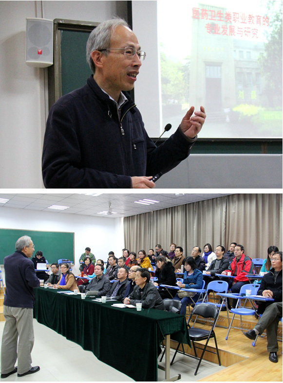 最后,全体与会人员,聆听了专家刘晨的专题报告《医药卫生类职业教育的专业发展与研究》。