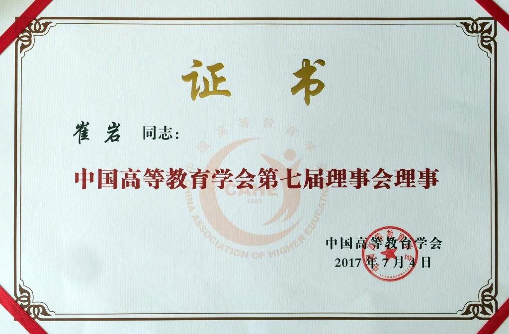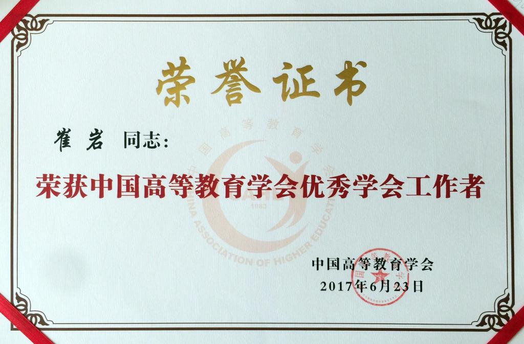 7月4日至5日,2017年中国高等教育学会第七届会员代表大会暨高等教育国际论坛在北京举行,教育部副部长林蕙青出席会议并讲话。会议对“中国高等教育学会杰出学会工作者”和“中国高等教育学会优秀学会工作者”进行了表彰,并选举产生新一届理事会理事、常务理事等。陕西省职业技术教育学会会长、陕西工院党委书记崔岩教授作为陕西高职院校唯一代表当选为新一届理事,并被授予“中国高等教育学会优秀学会工作者”称号。