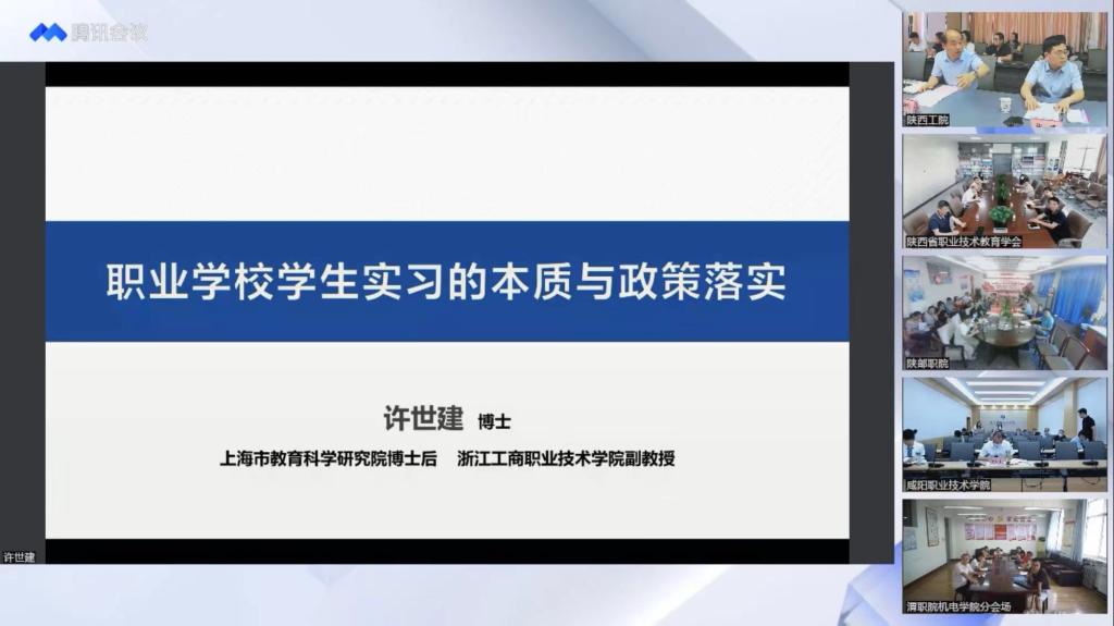 为贯彻落实教育部等八部门印发的《职业学校学生实习管理规定》文件精神,规范职业院校学生实习管理工作,进一步加强学生实习管理工作,全面提升学生实习质量,省职教学会及教学管理改革与技能大赛工作委员会于6月15日下午,以线上会议形式举办了《职业学校学生实习管理规定》专题研讨会,教育部职成司教学与质量处副处长董振华,陕西省职教学会会长崔岩教授,全省90余所中高职学校主管实习管理的校领导,教务处、实习管理部门、实习实训中心、二级院学院负责人,实训中心主任、实习指导教师等3800余人在分会场或以在线形式参加了会议。会议由陕西省职业技术教育学会教学管理改革与技能大赛工作委员会主任委员、陕西工业职业技术学院副校长梅创社教授主持并作会议总结,陕西工业职业技术学院党委副书记田昊代表省职教学会副会长、陕西工业职业技术学院校长刘永亮致辞。会议特邀教育部职成司职教专家许世建博士作了专题报告,12所中、高职院校主管实习教学的校领导进行了线上交流,16所院校发来了交流材料进行了书面交流。
