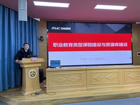 中教畅享(北京)科技有限公司总经理王鹏就职业教育类型课程建设与资源库建设方面进行介绍,他表示资源库建设及相关软件开发、应用将会更好的实现数字化课堂,有效助力优质教学成果产出。