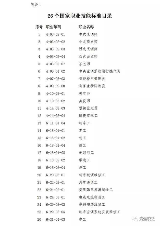 26个国家职业技能标准目录